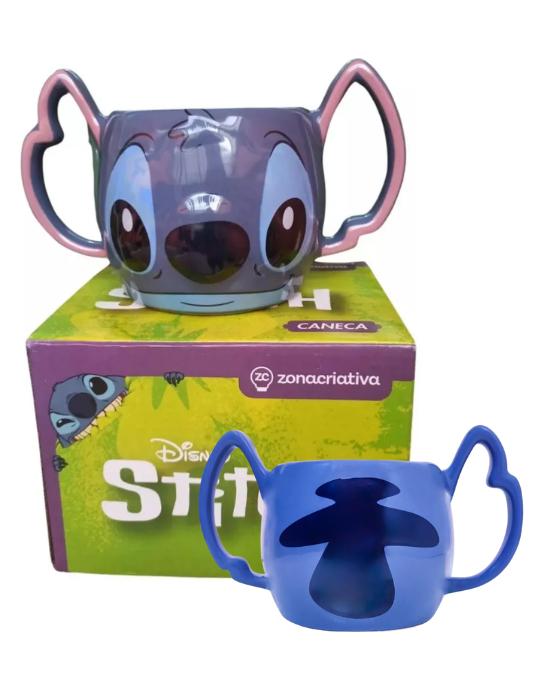Essa caneca do Stitch é a dose de fofura e multifuncionalidade que você precisa! Com 450ml, ela serve para sua bebida favorita, porta-lápis ou até para aquele cereal matinal. Um item must-have para os fãs do alienígena mais fofinho da Terra! #Stitch #Caneca3D #Disney #DecoracaoGeek #LiloEStitch