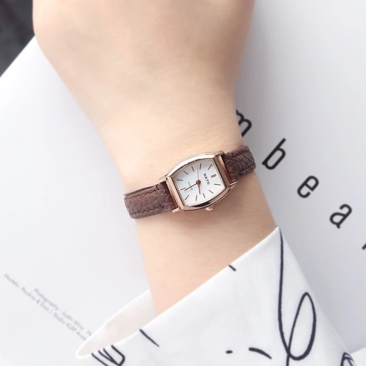 Relógio Feminino Elegante Tonneau Dial – Casual De Quartzo Com Pulseira De Couro